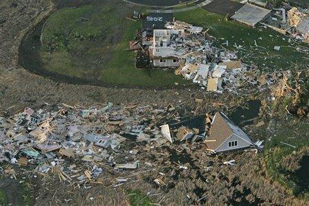 midsection on Sunday, killing at least eight people and damaging dozens of homes. About