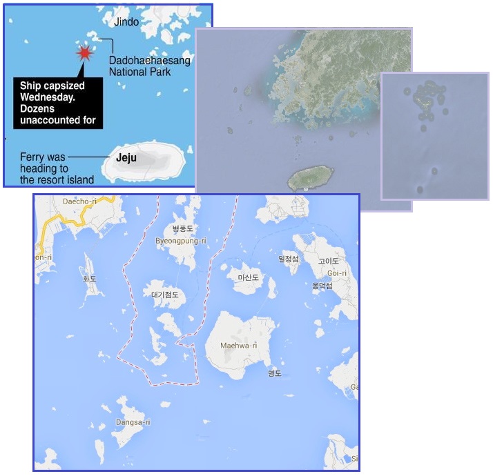 The Sewol incident is also not the first for Korea. On January 15, 2012, the same day as the Costa Concordia accident, an oil tanker was thrown against the rocks along the southwest coastline of S Korea just north of Jawol Island. Note the similarity in time with the Sewol disaster! Jawol Island happened at 8:00 am, and the Sewol disaster at 8:58 am.