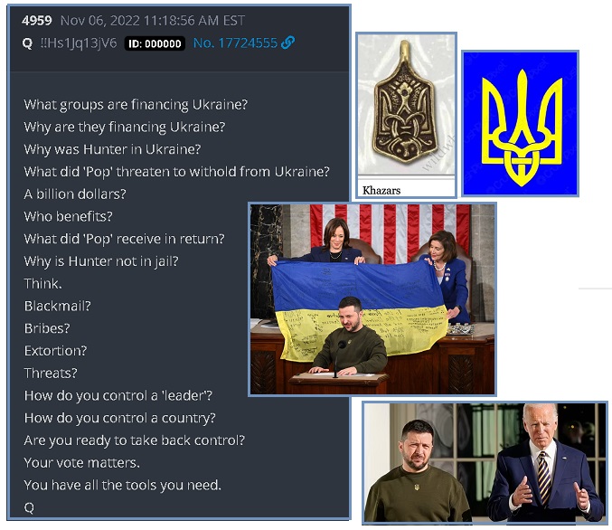 Just when the Ukraine is so obviously losing, why would the money laundering Cabal in Kiev trot out their Zelensky Double for a world begging tour? Nothing else has succeeded, and when the Ukraine leadership claimants are in exile, no one will listen to their pleas. Since both Biden and Pelosi are Doubles run by the Junta, they are allowing the Cabal’s Zelensky Double to showcase his combat togs and Khazar emblem, as a signal to the Khazarian banking empire and ultra-wealthy who rely upon the laundering facilities the Ukraine has always provided for them to rush to the rescue.