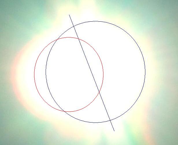 - The pillar from 5 to 11 o'clock is also not centered in the Sun, implying a body to the left of the Sun.