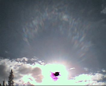 The sun finally peaked through the clouds yesterday [July 30] just long enough to snap a couple pictures. Looks like a red dust cloud to me. Mike This is the first photo of the predicted Fire Dragon! Nancy