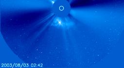 - I have watched Lasco and Soho for over two years now and have grown acustomed to various types and strengths of flares. This is where I become firm that this is no flare. Study this Frame in any photo or graphics software you have on your computer. This looks more like a big van burning oil, not the expected explosion that one would expect if the bright center was just stellar material. In the first frame [01:42], a body emerges into view , here it is clear there is a brigh luminous center even if one believes this is only a CME. In the next frame [02:18] it is even clearer that the matter that surrounds the body in question in this event is trailing the object and not showing proper relation to the sun as do most flares. In the last two frames [02:42 and 03:18] I see more evidence the matter surrounding the object is trailing it some distance as is observed by the tail end coming out atop the occulting disk, whether this is behind the sun also I cannot say. If this was a CME the tail end of the long tail would have to result from a flare atop the sun from this view. I have seen a flare look like that in size/brightness and range. [But] its Identical to the matter surround the bright star like body and goes in a nice long declining trail that starts to give a good 3D reference to this object and it's company.