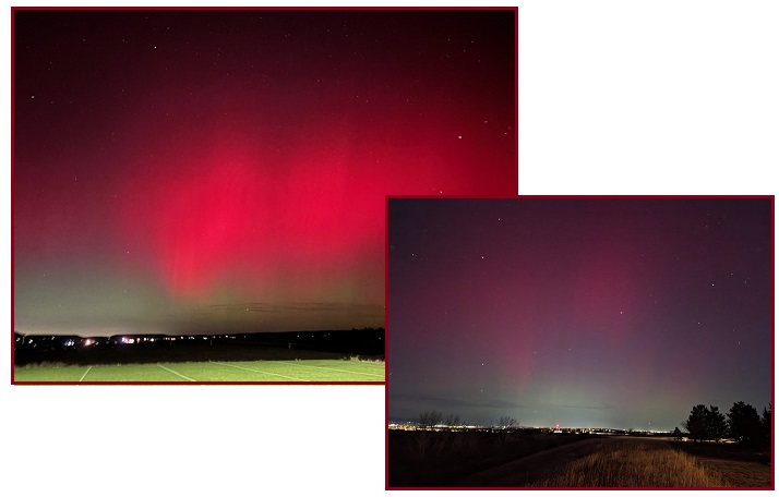 И в Колорадо тоже. «Многие жители Северного Колорадо говорят об этом сегодня вечером. На улице очень темно, и невооружённым глазом можно разглядеть звёзды, но ночное небо бесцветное. Но если сделать снимок на хорошую камеру без вспышки, то сегодня вечером небо будет явно красным.
